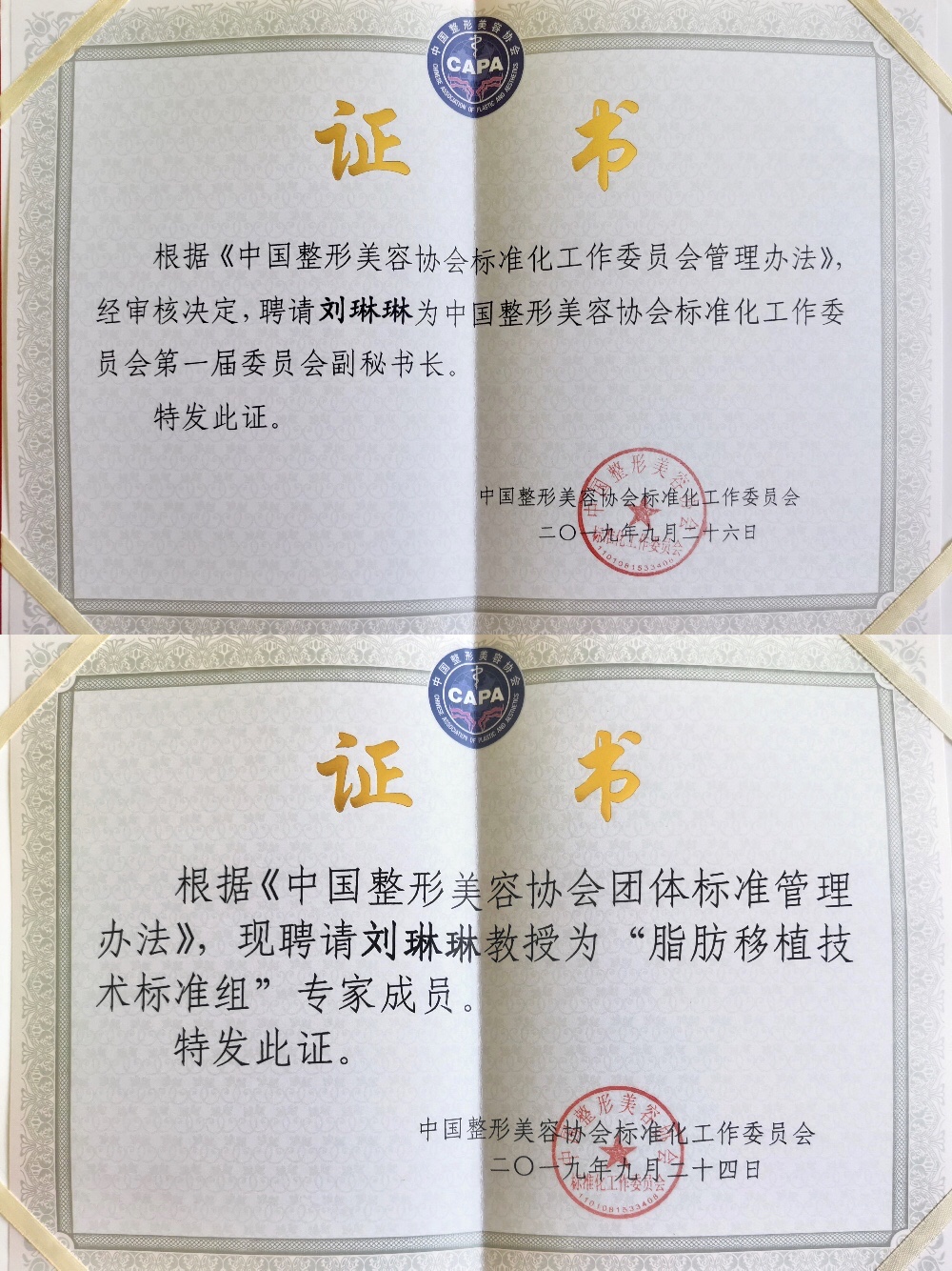壹加壹总裁刘琳琳继受聘中国整形美容协会技术标准与质量控制部主任之后,再担重任,受聘为中国整形美容协会标准化工作委员会第一届委员会副秘书长、“脂肪移植技术标准组”专家成员。